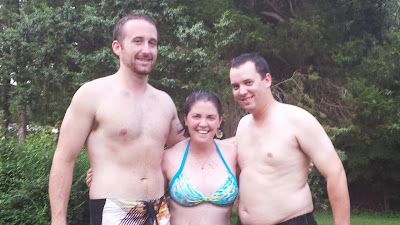 I did not have to work, but Mike did, so I did a lot of cleaning. Our house hasn't been cleaned in a while, so that was a great feeling. When Mike got home, we were invited to Kane and Rex's house for a party at their rented house. Basically, it was an awesome white trash party. We played yard games, shot gunned beers, blasted country music, and slipped and slided down their backyard [with the help of some dish soap].