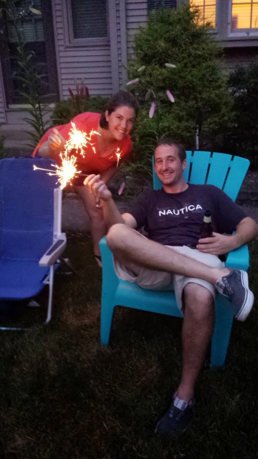 We had a great day at the house; I mowed the lawn, and we set up for Dave's going away party. [He's the one who's moving to LA.] The party was fantastic! So many friends came, we played tons of lawn games [Mike and I dominated bags], and watched fireworks down the street.